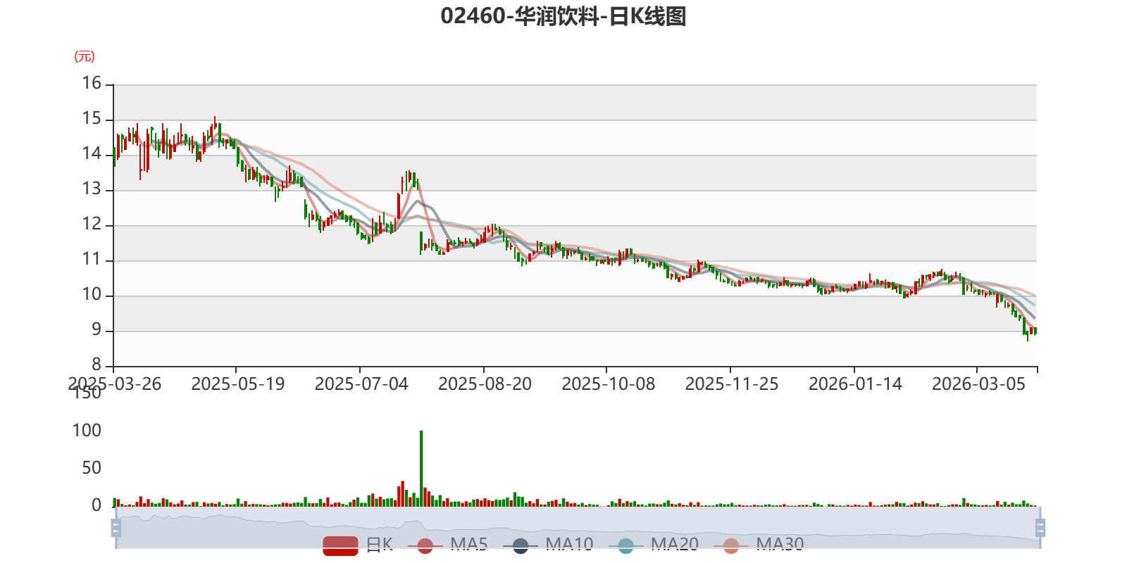 以3月26日收盘价策动,华润饮料当今市盈率(TTM)约19.63倍,市净率(TTM)约1.8倍,市销率(TTM)约1.76倍。
