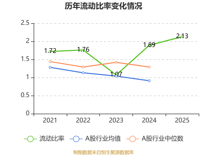2025年kaiyun体育网页版登录,公司流动比率为2.13,速动比率为2.02。
