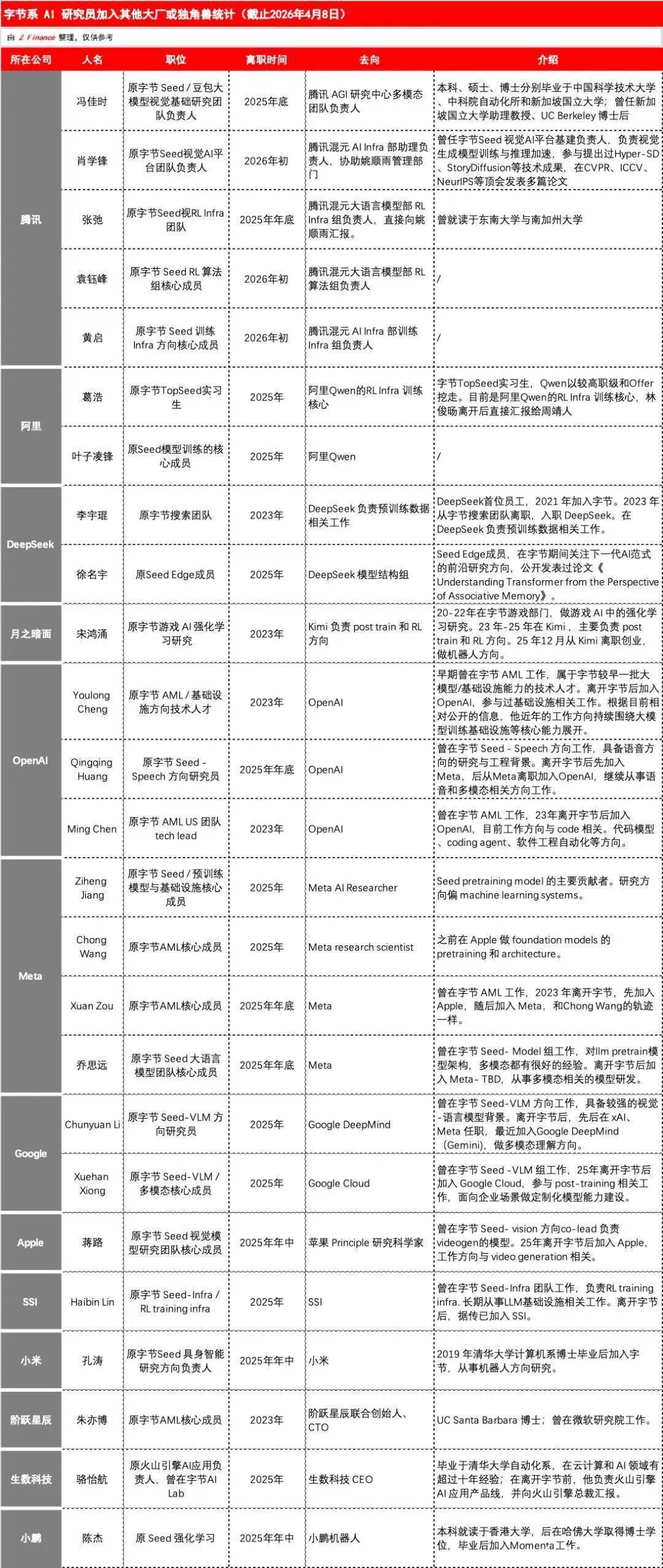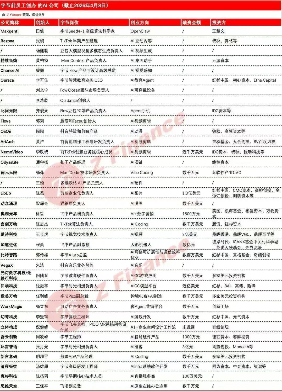 行业里流传着一张表格开云体育,记载字节前职工创办的AI公司和加入的AI大厂,险些每个月皆在更新。