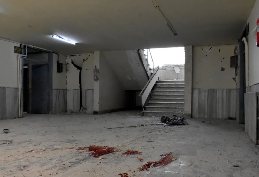 这是11月29日在叙利亚阿勒颇一处遭袭建筑拍摄的血印。新华社发